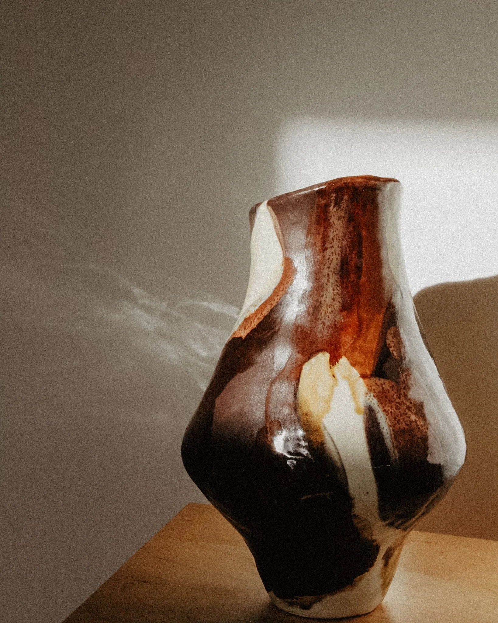 Taylor Evans-Kawchuk is a ceramic artist, writer, and painter living on lekwungen territory in Victoria, BC, Canada. Her work is interested in blurring the boundary between craft and contemporary art through playful pieces and sculptural vessels. Working intuitively through coil-building and throwing, her process is experienced as a form of meditation—dancing within the frame to bring forth asymmetrical pieces that experiment with themes of duality, nature and lineage. Inspired by a long line of women ceramicists, her practice celebrates the domestic and handmade as sites of beauty and artistic interest. Through each vessel, Tay denotes beauty found in the everyday and the potential for craft to hold purpose beyond utility.
